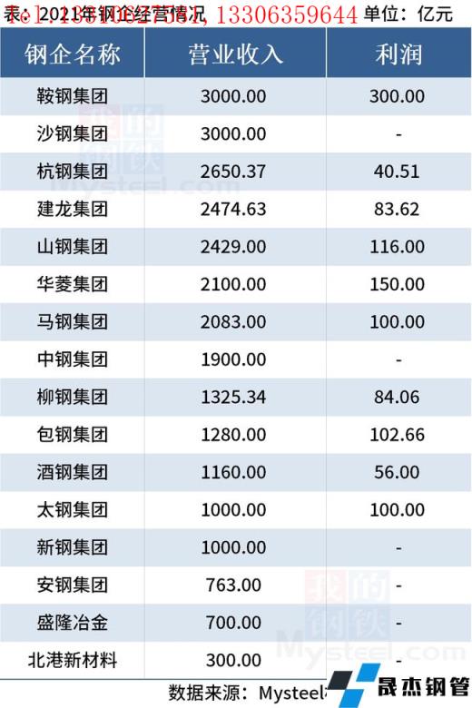 免責聲明:本網站(山東聊城晟杰無縫鋼管廠www.vsocial.cn)刊載的“16家鋼企2021年營收超2.7萬億元”等均源于網絡,版權歸原作者所有,且僅代表原作者觀點,本文所載信息僅供參考。轉載僅為學習與交流之目的,如無意中侵犯您的合法權益,請及時聯系刪除。本網站刊登此篇文章并不意味著本站贊同其觀點或證實其內容的真實性,我們不對其科學性、嚴肅性等作任何形式的保證。如果侵犯了您的版權,請盡快聯系我們予以撤銷,謝謝合作!