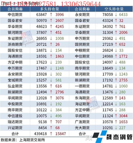 截至2月23日收盤,螺紋鋼2205收4786元/噸,跌0.71%;熱卷2205收4917元/噸,跌0.36%;鐵礦石2205收700元/噸,跌0.78%。