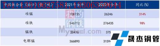 據(jù)統(tǒng)計(jì),2021年國(guó)內(nèi)硅錳、硅鐵、錳鐵、電解錳合金出口量均有不同程度的抬升,得益于2021年全球粗鋼產(chǎn)量的增加,(19.505億噸,同比提高3.7%)。