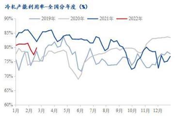受冬奧會限產、國家政策等方面的影響,各大無縫厚壁鋼管廠家陸續發布停產檢修計劃,市場資源供給偏少,據山東地區部分商家反饋,目前實際入庫資源不多,庫存有所增加但未到累庫高潮,增速緩慢于往年,市場庫存壓力不大。截止發稿,監測的29家冷軋板卷生產企業中,本周開工率85.11%,周環比增加2.13%;無縫厚壁鋼管廠家產能利用率80.62%,周環比增加0.79%;無縫厚壁鋼管廠家周實際產量為81.60萬噸,周環比增加0.80萬噸;無縫厚壁鋼管廠家庫存38.86萬噸,周環比減少2.08萬噸??v觀2021年冷軋產能利用率,1-8月份雖高于近三年的同期數據,但從2021年全年來看卻是在逐步減少,供給面呈現收緊狀態。
