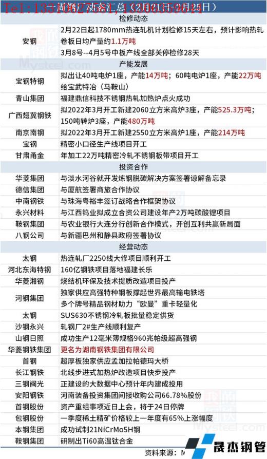 據(jù)不完全統(tǒng)計(jì),本周(2月21日-2月25日)有1家無(wú)縫厚壁鋼管廠家發(fā)布檢修動(dòng)態(tài),具體如下: