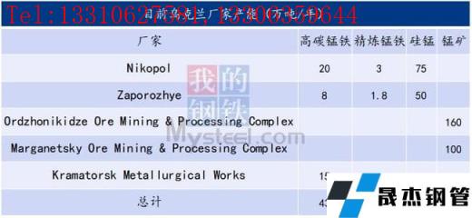 鐵合金企業:Nikopol是烏克蘭最大的一家鐵合金生產商,而第二Zaporozhye Ferroalloy Plant 擁有80多年的歷史,產量占烏克蘭的30-35%,占全球鐵合金產量的1-2%。Zaporozhye擁有29臺電弧爐,2臺直流電爐。出口國家有俄羅斯、白俄羅斯、哈薩克斯坦、歐盟國家以及土耳其、埃及、日本、韓國等。