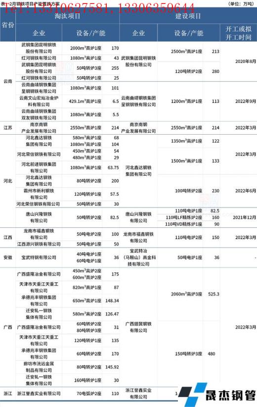 據(jù)不完全統(tǒng)計(jì),2022年2月有9家無縫厚壁鋼管廠家發(fā)布鋼鐵產(chǎn)能置換方案。其中,涉及新建煉鋼產(chǎn)能1328萬噸,新建煉鐵產(chǎn)能1320.3萬噸;涉及淘汰煉鋼產(chǎn)能超1567.92萬噸,淘汰煉鐵產(chǎn)能1395.56萬噸。