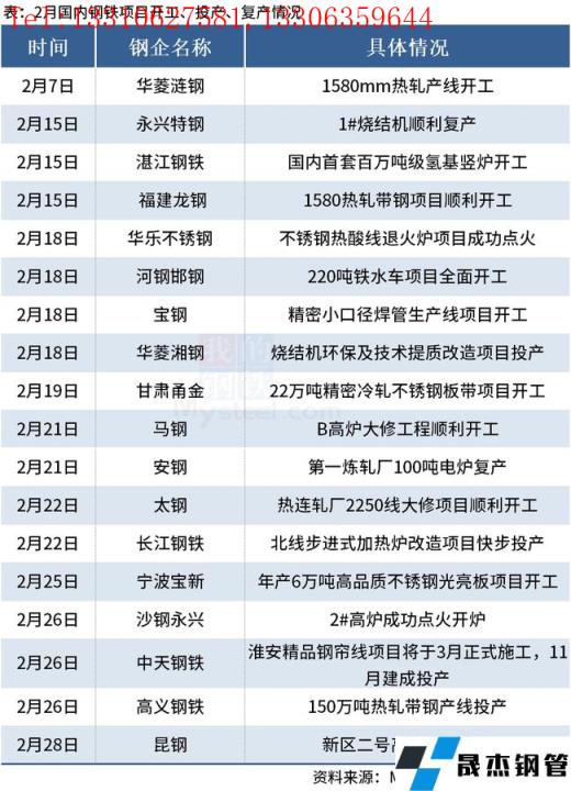 免責聲明:本網站(山東聊城晟杰無縫鋼管廠www.vsocial.cn)刊載的“2月國內18個鋼鐵項目開工、投產和復產”等均源于網絡,版權歸原作者所有,且僅代表原作者觀點,本文所載信息僅供參考。轉載僅為學習與交流之目的,如無意中侵犯您的合法權益,請及時聯系刪除。本網站刊登此篇文章并不意味著本站贊同其觀點或證實其內容的真實性,我們不對其科學性、嚴肅性等作任何形式的保證。如果侵犯了您的版權,請盡快聯系我們予以撤銷,謝謝合作!