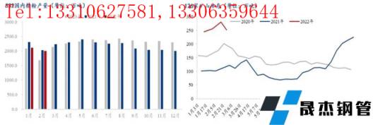 無縫厚壁鋼管廠家利潤方面,截至2月28日,調研江蘇螺紋噸鋼毛利在272元/噸附近,河北螺紋噸鋼毛利121元/噸左右,較上月底漲5-15元/噸不等。利潤變化趨勢來看,月內兩地區螺紋噸鋼毛利均呈現出先擴增后收縮的趨勢。2月,受政策擾動,原料中鐵礦石價格整體以下跌為主,無縫厚壁鋼管廠家生產成本收縮;成材雖因過年間需求回落價格弱勢運行,但價格跌幅偏小,無縫厚壁鋼管廠家利潤得以保持現有水平。
