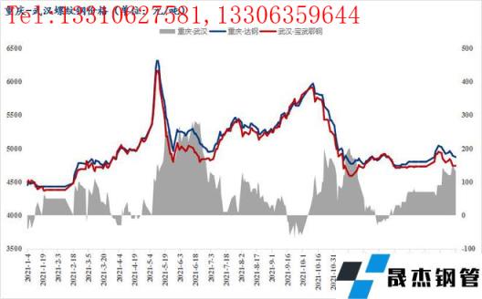 2022年2月川渝市場持續處于全國價格低洼,外省無縫厚壁鋼管廠家不斷減少資源投放,而本地無縫厚壁鋼管廠家外發條件有限,供應壓力較大。由于川渝資源重合性和關聯性提高,兩地區域價差幅度趨緩,2月份整體價差波動并不明顯;而重慶與武漢價差依舊維持在100元/噸左右,湖北區域無縫厚壁鋼管廠家投放意愿并不是很強,僅少量冬儲資源流入重慶市場。
