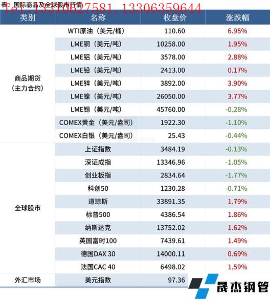 ◎ 安賽樂米塔爾歐洲公司宣布從2022年3月1日起將當(dāng)?shù)劁N售的熱軋板卷價(jià)格大幅提高180歐元/噸(200美元/噸)。歐洲無縫厚壁鋼管廠家可能將冷軋板卷的目標(biāo)價(jià)格定在1250歐元/噸(1389美元/噸),熱鍍鋅板定在1300歐元/噸(1445美元/噸)。