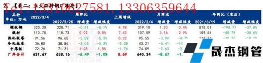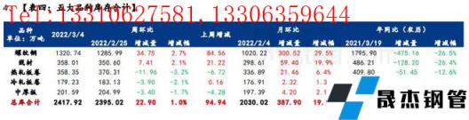 庫(kù)存方面,五大品種厚壁無(wú)縫鋼管總庫(kù)存春節(jié)后連續(xù)累增5周,環(huán)比上周增加22.9萬(wàn)噸,增幅1%。分品種看,建材庫(kù)存增加42.16萬(wàn)噸,增幅為2.6%;板材庫(kù)存減少19.26萬(wàn)噸,降幅2.5%;分指標(biāo)看,五大品種無(wú)縫厚壁鋼管廠家?guī)齑姝h(huán)比減少6.49萬(wàn)噸,降幅1%;五大品種社會(huì)庫(kù)存環(huán)比增加29.39萬(wàn)噸,增幅1.7%。