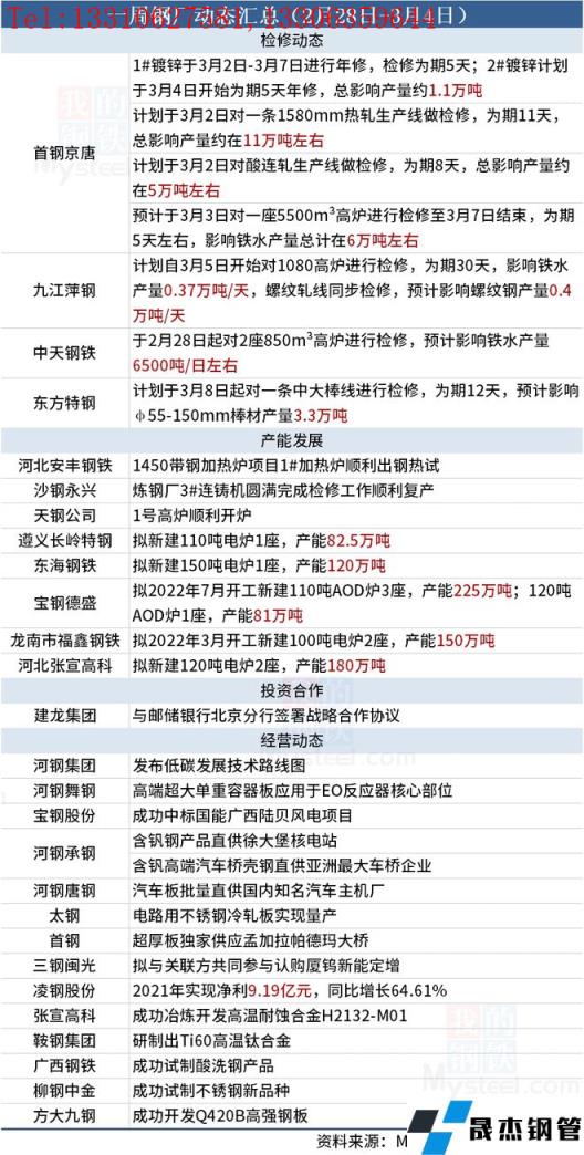 據(jù)不完全統(tǒng)計,本周(2月28日-3月4日)有4家無縫厚壁鋼管廠家發(fā)布檢修動態(tài),具體如下: