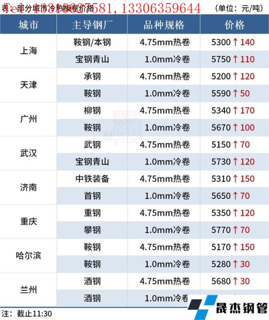 ◎上海:7日早盤熱卷市場價(jià)格漲140,現(xiàn)主流報(bào)價(jià)1500普5280-5300元/噸,1800報(bào)5390-5400元/噸;1500錳5440元/噸,1800報(bào)5540元/噸左右,2.75Q235B報(bào)5410-5440元/噸,2.75SPHC報(bào)5460元/噸左右。(單位:元/噸)
