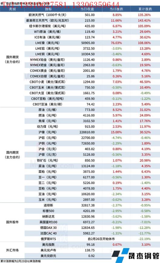 免責聲明:本網站(山東聊城晟杰無縫鋼管廠www.vsocial.cn)刊載的“受近期局勢影響大宗商品價格一覽表(3月7日)”等均源于網絡,版權歸原作者所有,且僅代表原作者觀點,本文所載信息僅供參考。轉載僅為學習與交流之目的,如無意中侵犯您的合法權益,請及時聯系刪除。本網站刊登此篇文章并不意味著本站贊同其觀點或證實其內容的真實性,我們不對其科學性、嚴肅性等作任何形式的保證。如果侵犯了您的版權,請盡快聯系我們予以撤銷,謝謝合作!