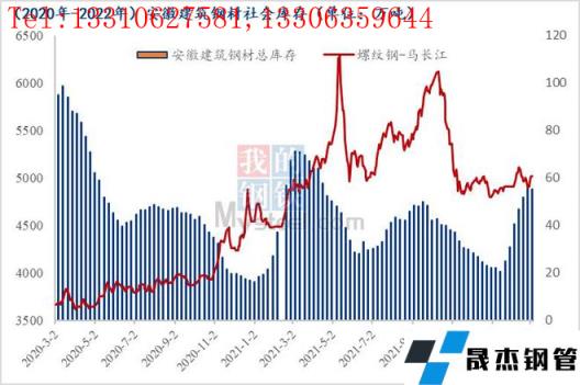 圖2:安徽建筑厚壁無縫鋼管社會(huì)庫存(單位:萬噸)