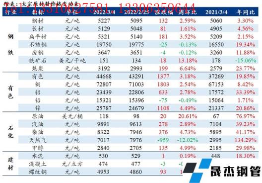 免責聲明:本網站(山東聊城晟杰無縫鋼管廠www.vsocial.cn)刊載的“周報:大宗原材料價格周報(2.28-3.4)”等均源于網絡,版權歸原作者所有,且僅代表原作者觀點,本文所載信息僅供參考。轉載僅為學習與交流之目的,如無意中侵犯您的合法權益,請及時聯系刪除。本網站刊登此篇文章并不意味著本站贊同其觀點或證實其內容的真實性,我們不對其科學性、嚴肅性等作任何形式的保證。如果侵犯了您的版權,請盡快聯系我們予以撤銷,謝謝合作!