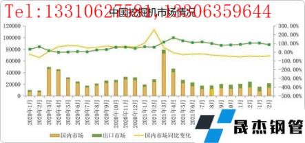 據(jù)市場情況了解到,2月份國內(nèi)市場預估銷量15000臺,國內(nèi)市場銷量增速降幅小幅收窄;出口市場預估銷量7000臺,增速87%左右。按照三月份的調(diào)研數(shù)據(jù)顯示,預計國內(nèi)工程機械市場仍然按照年度周期性進入旺季。一季度的年度旺季的起始點在2月15日左右市場才有所啟動,2月整體的挖掘機市場情況環(huán)比情況好轉,節(jié)后需求逐步恢復,基建下行壓力緩解。當前受國際形勢影響,挖機機的市場國內(nèi)外分配情況情況存在變動,整體趨勢走向還是向上為主。