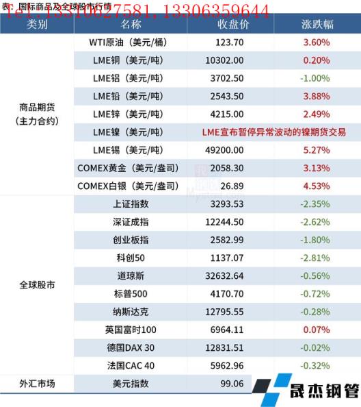 免責(zé)聲明:本網(wǎng)站(山東聊城晟杰無縫鋼管廠www.vsocial.cn)刊載的“2022年03月09日早讀:LME緊急切斷鎳期貨交易,美宣布禁止進(jìn)口俄羅斯石油”等均源于網(wǎng)絡(luò),版權(quán)歸原作者所有,且僅代表原作者觀點(diǎn),本文所載信息僅供參考。轉(zhuǎn)載僅為學(xué)習(xí)與交流之目的,如無意中侵犯您的合法權(quán)益,請(qǐng)及時(shí)聯(lián)系刪除。本網(wǎng)站刊登此篇文章并不意味著本站贊同其觀點(diǎn)或證實(shí)其內(nèi)容的真實(shí)性,我們不對(duì)其科學(xué)性、嚴(yán)肅性等作任何形式的保證。如果侵犯了您的版權(quán),請(qǐng)盡快聯(lián)系我們予以撤銷,謝謝合作!