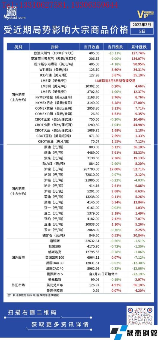 近期,受國際局勢影響,全球金融及大宗商品市場出現(xiàn)較大波動。3月8日,倫敦金屬交易所(LME)宣布暫停鎳交易并取消當(dāng)日早間已執(zhí)行的鎳交易,推遲了原定于3月9日的鎳合約交割,倫鎳“逼空”按下暫停鍵。匯總情況如下: