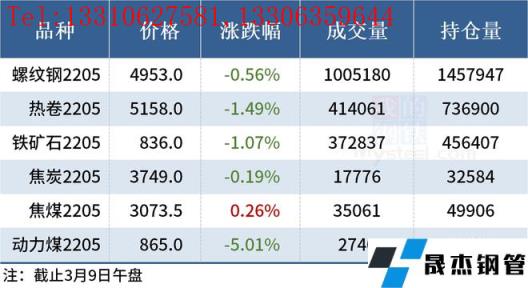 免責聲明:本網站(山東聊城晟杰無縫鋼管廠www.vsocial.cn)刊載的“2022年03月09日午報:鋼價多數下跌,動力煤期貨跌逾5%”等均源于網絡,版權歸原作者所有,且僅代表原作者觀點,本文所載信息僅供參考。轉載僅為學習與交流之目的,如無意中侵犯您的合法權益,請及時聯系刪除。本網站刊登此篇文章并不意味著本站贊同其觀點或證實其內容的真實性,我們不對其科學性、嚴肅性等作任何形式的保證。如果侵犯了您的版權,請盡快聯系我們予以撤銷,謝謝合作!