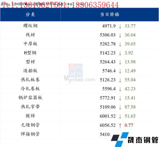 3月10日普鋼絕對價格指數(shù)變化:綜合指數(shù)5227.06,下跌43.55;螺紋鋼指數(shù)4971.9,下跌33.77;線材指數(shù)5306.03,下跌36.04;熱軋板卷指數(shù)5126.23,下跌55.04;冷軋板卷指數(shù)5596.4,下跌42.23;中厚板指數(shù)5202.78,下跌39.65。