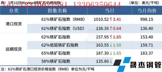 ◎3月10日,全國主港鐵礦石成交111.00萬噸,環比增85%;237家主流貿易商建材成交17.50萬噸,環比增33.9%。