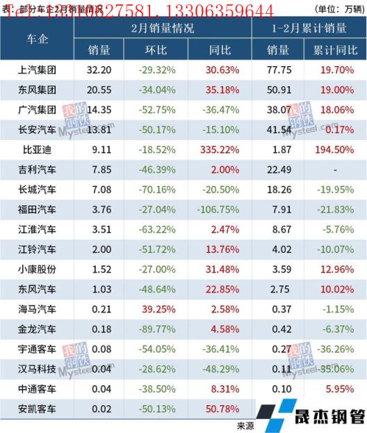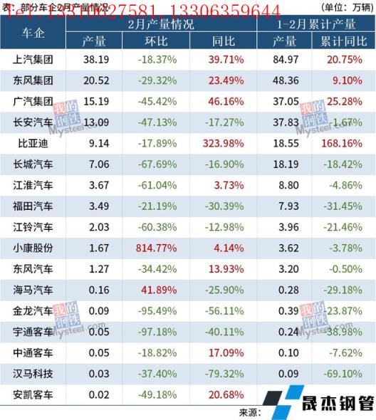 免責聲明:本網站(山東聊城晟杰無縫鋼管廠www.vsocial.cn)刊載的“2月上市車企產銷量出爐,排名前三位產量同比大增”等均源于網絡,版權歸原作者所有,且僅代表原作者觀點,本文所載信息僅供參考。轉載僅為學習與交流之目的,如無意中侵犯您的合法權益,請及時聯系刪除。本網站刊登此篇文章并不意味著本站贊同其觀點或證實其內容的真實性,我們不對其科學性、嚴肅性等作任何形式的保證。如果侵犯了您的版權,請盡快聯系我們予以撤銷,謝謝合作!