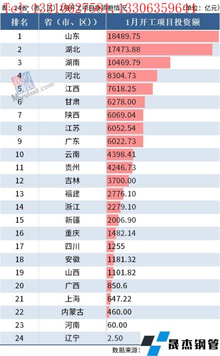 資料顯示,2月山東、湖北、湖南3省開工總投資額超萬(wàn)億,分別為1.85萬(wàn)億、1.75萬(wàn)億、1.05萬(wàn)億。