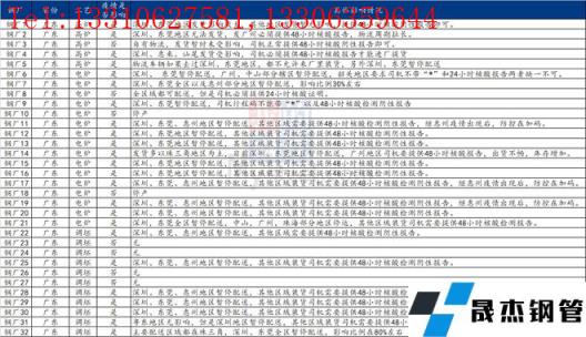 近期受疫情擴散影響,深圳、東莞多地區工地停工停產,公交地鐵停運,對建筑用鋼需求端造成較大影響。根據疫情防控的相關要求,廣東省多數生產企業為保障疫情防控工作,為有效管控疫情傳播擴散風險,全力保障無縫厚壁鋼管廠家及市場安全。經調研廣東大部分無縫厚壁鋼管廠家受到物流出貨影響,部分疫情嚴重地級市無法正常配送及發貨,多數無縫厚壁鋼管廠家對于疫情嚴重地區暫停配送,小部分地區需要司機提供48小時核酸檢測陰性報告。據悉,目前疫情嚴重地區主要以深圳、東莞及惠州地區為主。而從最新了解的情況來看,受疫情影響主要無縫厚壁鋼管廠家暫停配送影響比例在三成左右,不少地區繼深圳、東莞、惠州之后,防控加碼,如韶關、中山、珠海以及清遠地區,目前珠三角地區主要就佛山和江門市暫無防疫要求。目前目前各無縫厚壁鋼管廠家詳細提貨及影響運輸要求見下表明細。后期政策變動情況,請具體咨詢當地無縫厚壁鋼管廠家。