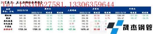 庫存方面,五大品種厚壁無縫鋼管總庫存節(jié)后第2周持降,環(huán)比上周減少7.28萬噸,降幅0.3%。分品種看,建材庫存減少3.17萬噸,降幅為0.2%;板材庫存減少4.11萬噸,降幅0.6%;分指標看,五大品種無縫厚壁鋼管廠家?guī)齑姝h(huán)比增加28.69萬噸,增幅4.8%;五大品種社會庫存環(huán)比減少35.97萬噸,降幅2%。