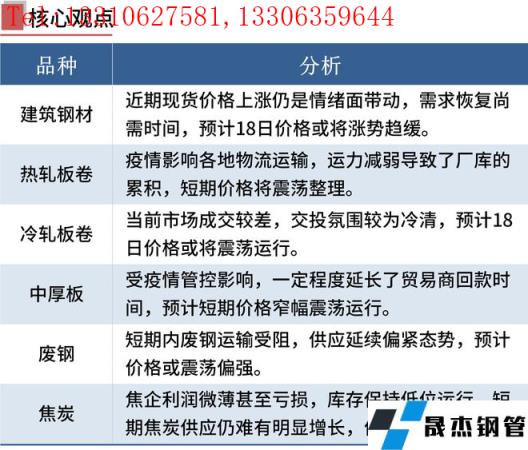 建筑厚壁無縫鋼管:3月17日,全國31個主要城市20mm三級抗震螺紋鋼均價4940元/噸,較上個交易日上漲32元/噸。本周受山西無縫厚壁鋼管廠家復產影響,產量繼續小幅回升,社會庫存繼續下降,但廠庫受疫情影響有所增加,本周表觀消費出現回落。短期來看,近期現貨價格上漲仍是情緒面帶動,需求恢復尚需時間,短期還需要關注疫情對于需求復蘇影響。綜合來看,預計18日國內建筑厚壁無縫鋼管價格或將漲勢趨緩為主。