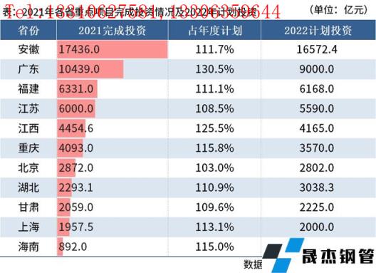 ◎ 據(jù)不完全統(tǒng)計,截至3月16日,已有11個省份公布其2021年重點項目完成投資情況和2022年計劃目標。2022年,上述11省份共計劃投資近5.6萬億元,其中安徽省計劃投資超1.65萬億,排名第一。