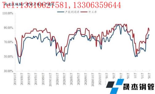 本周西北區域15家建筑厚壁無縫鋼管生產廠家48條產線實際開工41條,軋線開工率為85.4%,周環比下降4%;建材產線實際產量約66萬噸,周環比減少約0.5萬噸,產能利用率為79.8%,周環比下降0.3%,減量部分主要在陜西LG無縫厚壁鋼管廠家高爐停產兩條軋線同步檢修。