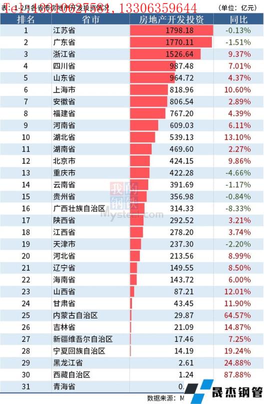 分別整理了1-2月各省市房地產開發(fā)投資情況、各省市房地產開發(fā)規(guī)模與開,竣工面積增長情況,具體如下: