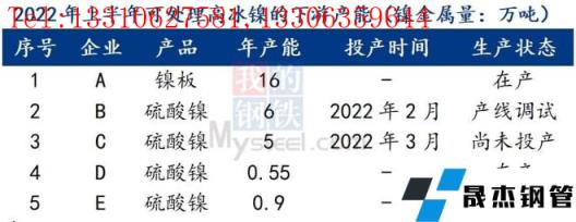 據(jù)調(diào)研了解,由于國內(nèi)現(xiàn)有高冰鎳月處理產(chǎn)能1.34萬鎳金屬噸,且目前個(gè)別硫酸鎳企業(yè)使用高冰鎳仍存在技術(shù)問題,最大消耗能力還有待考驗(yàn);另據(jù)行業(yè)人士表示,新增高冰鎳加工設(shè)備也需要至少半年時(shí)間,所以保守估計(jì)2022年上半年國內(nèi)高冰鎳最大加工處理能力很難超過其月處理產(chǎn)能。
