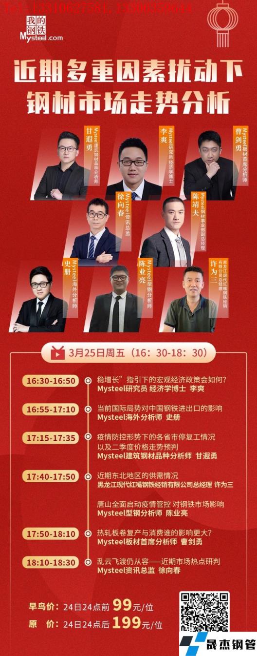 3月25日周五下午16:30,黑龍江現(xiàn)代紅嘴鋼鐵經(jīng)銷有限公司總經(jīng)理許為三、資訊總監(jiān)徐向春、經(jīng)濟學(xué)博士研究員李爽、板材首席分析師曹劍勇、建筑厚壁無縫鋼管品種分析師甘遐勇、型鋼分析師陳業(yè)亮及國際鋼鐵市場分析師史冊,將做客直播間,聊一聊近期多重因素擾動下對鋼鐵市場的影響有哪些?