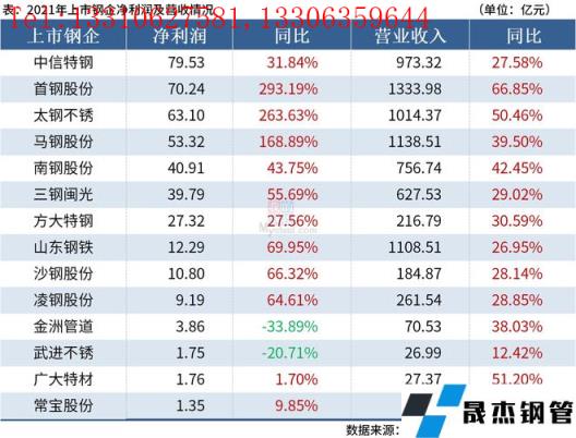 免責聲明:本網站(山東聊城晟杰無縫鋼管廠www.vsocial.cn)刊載的“14家上市鋼企2021年實現凈利超410億元”等均源于網絡,版權歸原作者所有,且僅代表原作者觀點,本文所載信息僅供參考。轉載僅為學習與交流之目的,如無意中侵犯您的合法權益,請及時聯系刪除。本網站刊登此篇文章并不意味著本站贊同其觀點或證實其內容的真實性,我們不對其科學性、嚴肅性等作任何形式的保證。如果侵犯了您的版權,請盡快聯系我們予以撤銷,謝謝合作!