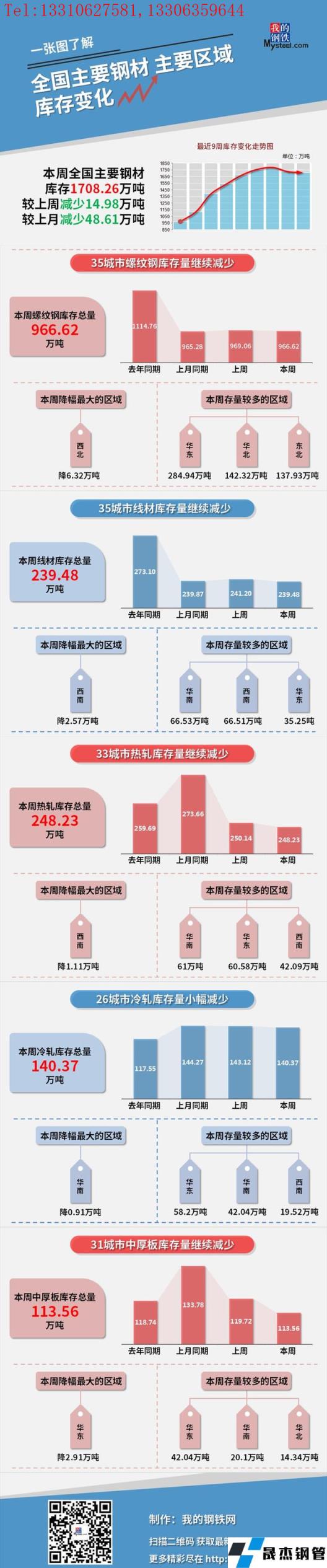 本周,全國(guó)主要厚壁無縫鋼管社會(huì)庫存1708.26萬噸,較上周減少14.98萬噸,較上月減少48.61萬噸;螺紋鋼庫存總量966.62萬噸。