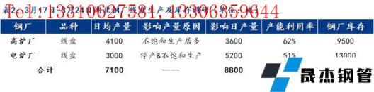 2、湖北省無縫厚壁鋼管廠家線盤日均產量0.71萬噸,周環比減少0.33萬噸;檢修/限產影響線盤日產量為0.88萬噸,產能利用率45%,較上周減少31%。