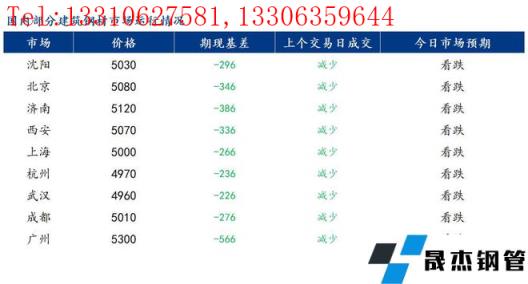現(xiàn)貨市場動態(tài):5日,全國31個主要城市20mm三級抗震螺紋鋼均價5114元/噸,較上個交易日跌28元/噸;上海螺紋鋼美元計價指數(shù)收于766.49,跌1.87%。具體來看,昨日早盤期螺震蕩偏弱,上午商家建筑厚壁無縫鋼管價格整體下跌,午后期螺繼續(xù)走弱,市場交投氛圍較為冷清,全天整體成交較前一交易日有所減量。預計今日國內建筑厚壁無縫鋼管市場偏弱運行。
