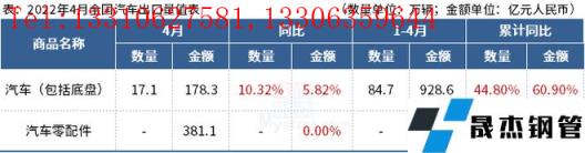 免責(zé)聲明:本網(wǎng)站(山東聊城晟杰無(wú)縫鋼管廠www.vsocial.cn)刊載的“海關(guān)總署:4月中國(guó)出口汽車17.1萬(wàn)輛,同比增長(zhǎng)10.32%”等均源于網(wǎng)絡(luò),版權(quán)歸原作者所有,且僅代表原作者觀點(diǎn),本文所載信息僅供參考。轉(zhuǎn)載僅為學(xué)習(xí)與交流之目的,如無(wú)意中侵犯您的合法權(quán)益,請(qǐng)及時(shí)聯(lián)系刪除。本網(wǎng)站刊登此篇文章并不意味著本站贊同其觀點(diǎn)或證實(shí)其內(nèi)容的真實(shí)性,我們不對(duì)其科學(xué)性、嚴(yán)肅性等作任何形式的保證。如果侵犯了您的版權(quán),請(qǐng)盡快聯(lián)系我們予以撤銷,謝謝合作!