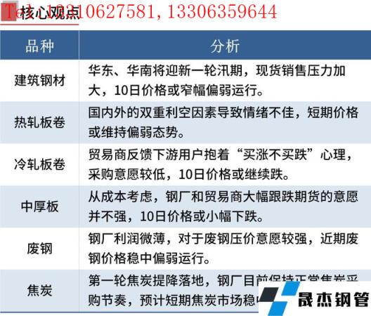 建筑厚壁無(wú)縫鋼管:5月9日,全國(guó)31個(gè)主要城市20mm三級(jí)抗震螺紋鋼均價(jià)5022元/噸,較上個(gè)交易日下跌50元/噸。短期來(lái)看,近期市場(chǎng)心態(tài)偏悲觀(guān),同時(shí)華東、華南即將迎來(lái)新一輪汛期,現(xiàn)貨銷(xiāo)售壓力加大。因此在缺乏有效強(qiáng)需求支撐下,預(yù)計(jì)10日建筑厚壁無(wú)縫鋼管價(jià)格或?qū)⒄踹\(yùn)行。