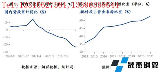2020年8月,監(jiān)管層設置“三道紅線”的監(jiān)管指標,對房企進行分檔管理,限制其有息負債擴張速度;2021年1月,央行、銀保監(jiān)會建立房地產貸款集中度管理制度,對銀行業(yè)金融進行管理制度,限制銀行資金過度流入地產行業(yè)。三道紅線及貸款集中制,限制了房地產企業(yè)表內融資能力,這兩個政策在2022年2月開始對地產市場產生沖擊,國內貸款同比自14.4%的高位持續(xù)回落,延續(xù)至今。至此,房地產企業(yè)的表外融資渠道、表內融資渠道都有較大限制,房地產資金短缺問題成為重要的麻煩。但此階段,房地產企業(yè)尚未出現(xiàn)大的危機,主要得益于房價上漲預期仍在,地產銷售偏好,預售資金來源尚能支撐地產企業(yè)運行。