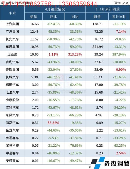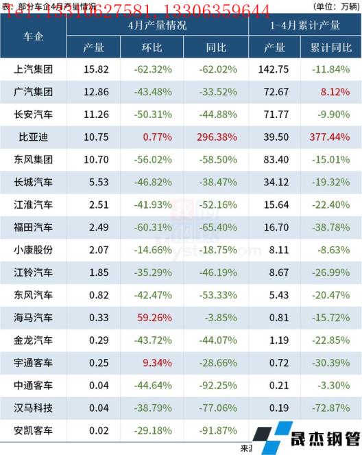 免責聲明:本網站(山東聊城晟杰無縫鋼管廠www.vsocial.cn)刊載的“4月19家車企銷量出爐,超九成同比大降”等均源于網絡,版權歸原作者所有,且僅代表原作者觀點,本文所載信息僅供參考。轉載僅為學習與交流之目的,如無意中侵犯您的合法權益,請及時聯系刪除。本網站刊登此篇文章并不意味著本站贊同其觀點或證實其內容的真實性,我們不對其科學性、嚴肅性等作任何形式的保證。如果侵犯了您的版權,請盡快聯系我們予以撤銷,謝謝合作!
