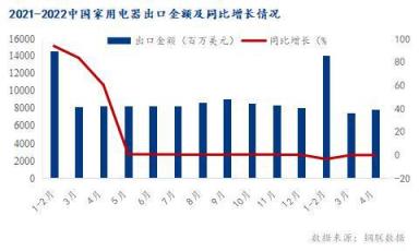 從統(tǒng)計(jì)局公布的最新數(shù)據(jù)看,2022年一季度中國(guó)家用電器累計(jì)出口金額29387百萬(wàn)美元,同比下降5.3%。其中4月中國(guó)家用電器出口金額7860.0百萬(wàn)美元,同比下降0.1%。