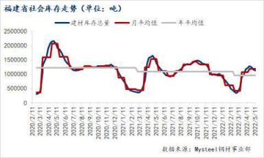 5月11日福建省建材總庫存合計94.79萬噸,與上周相比減少2.83萬噸,其中閩東41.91萬噸、閩南45.01萬噸、閩西北7.87萬噸。