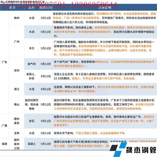 今年以來最強降雨過程已經(jīng)在華南拉開帷幕。據(jù)氣象水文部門預(yù)測,5月9日至13日江南南部和華南地區(qū)將迎來入汛以來最強降雨過程,本輪強降雨覆蓋范圍廣、持續(xù)時間長、累計雨量大、局地雨勢猛,廣東、廣西、福建、重慶、四川、貴州、云南省(自治區(qū)、直轄市)等多地啟動防汛Ⅳ級應(yīng)急響應(yīng),部分強降雨天氣影響下多地施工進度受損,運輸和終端施工進度受限,建筑材料市場行情弱勢運行。