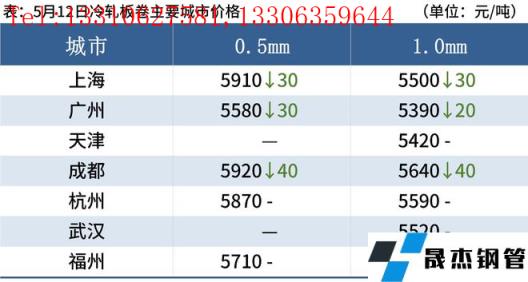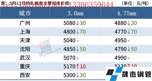 冷軋板卷:5月12日,全國24個(gè)主要城市1.0mm冷卷均價(jià)5569元/噸,較上個(gè)交易日下跌7元/噸。今日黑色系期貨盤面呈高開低走,現(xiàn)貨市場報(bào)價(jià)混亂,部分商家報(bào)價(jià)以穩(wěn)為主,今日成交表現(xiàn)偏差。心態(tài)方面,南方近期進(jìn)入汛期,市場需求或?qū)⒂兴鶞?,商家心態(tài)多謹(jǐn)慎,當(dāng)下操作以出貨成交為主。庫存方面,據(jù)不完全統(tǒng)計(jì),本周冷軋無縫厚壁鋼管廠家?guī)齑?3.05萬噸,周環(huán)比減少1.08萬噸,社會(huì)庫存136.81萬噸,周環(huán)比減少2.60萬噸,周消費(fèi)量83.81萬噸,環(huán)比增加0.50萬噸。綜合來看,故預(yù)計(jì)13日國內(nèi)冷軋板卷價(jià)格或?qū)⒄鹗幤踹\(yùn)行。