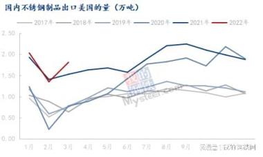 海關(guān)數(shù)據(jù)顯示,此前中國大陸出口美國的不銹厚壁無縫鋼管的量在5000噸/月左右,2020年受疫情影響,量下降至月均3000噸,2021年因當(dāng)?shù)毓?yīng)下降、家庭補(bǔ)貼等因素影響,量逐步擴(kuò)大。