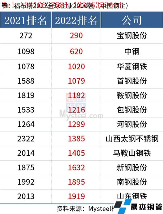 免責聲明:本網站(山東聊城晟杰無縫鋼管廠www.vsocial.cn)刊載的“中國12家鋼企上榜福布斯2022全球企業2000強”等均源于網絡,版權歸原作者所有,且僅代表原作者觀點,本文所載信息僅供參考。轉載僅為學習與交流之目的,如無意中侵犯您的合法權益,請及時聯系刪除。本網站刊登此篇文章并不意味著本站贊同其觀點或證實其內容的真實性,我們不對其科學性、嚴肅性等作任何形式的保證。如果侵犯了您的版權,請盡快聯系我們予以撤銷,謝謝合作!
