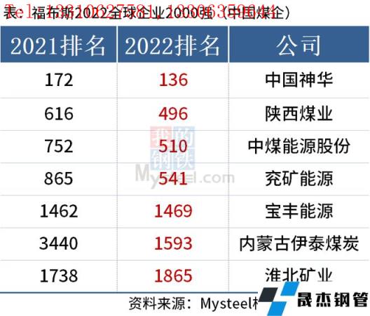 免責(zé)聲明:本網(wǎng)站(山東聊城晟杰無(wú)縫鋼管廠www.vsocial.cn)刊載的“中國(guó)7家煤企上榜福布斯2022全球企業(yè)2000強(qiáng)”等均源于網(wǎng)絡(luò),版權(quán)歸原作者所有,且僅代表原作者觀點(diǎn),本文所載信息僅供參考。轉(zhuǎn)載僅為學(xué)習(xí)與交流之目的,如無(wú)意中侵犯您的合法權(quán)益,請(qǐng)及時(shí)聯(lián)系刪除。本網(wǎng)站刊登此篇文章并不意味著本站贊同其觀點(diǎn)或證實(shí)其內(nèi)容的真實(shí)性,我們不對(duì)其科學(xué)性、嚴(yán)肅性等作任何形式的保證。如果侵犯了您的版權(quán),請(qǐng)盡快聯(lián)系我們予以撤銷(xiāo),謝謝合作!