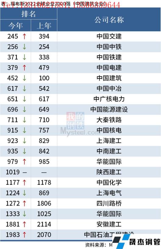 免責聲明:本網站(山東聊城晟杰無縫鋼管廠www.vsocial.cn)刊載的“中國20家建筑企業上榜福布斯2022全球企業2000強”等均源于網絡,版權歸原作者所有,且僅代表原作者觀點,本文所載信息僅供參考。轉載僅為學習與交流之目的,如無意中侵犯您的合法權益,請及時聯系刪除。本網站刊登此篇文章并不意味著本站贊同其觀點或證實其內容的真實性,我們不對其科學性、嚴肅性等作任何形式的保證。如果侵犯了您的版權,請盡快聯系我們予以撤銷,謝謝合作!