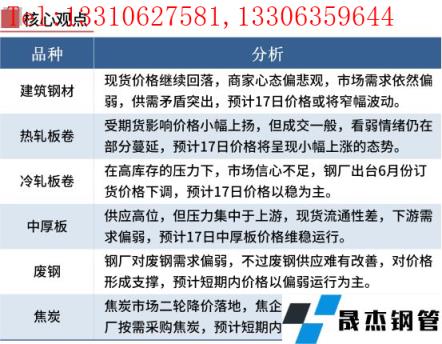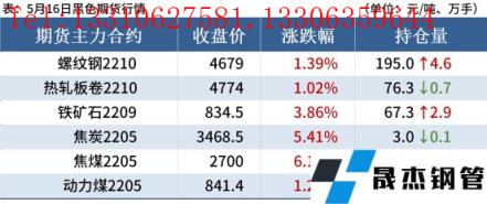 焦炭:5月16日,焦炭市場偏弱運行,焦炭市場二輪降價落地,累計降幅為400元/噸。產地焦企開工正常,生產良好,當前焦企仍有盈利即產即銷,出貨順暢。無縫厚壁鋼管廠家方面,無縫厚壁鋼管廠家焦炭庫存呈現增勢,現大多控制到貨節(jié)奏,按需采購焦炭,考慮到無縫厚壁鋼管廠家成品出貨壓力較大且原料成本依然偏高,繼續(xù)打壓焦價意愿強烈。原料煤價格繼續(xù)回落,成本支撐較弱,預計短期內焦炭市場偏弱運行。